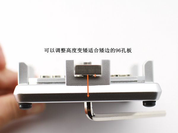 2. 本磁力架适用于各种不同的96孔板,可自由调节固定卡扣的高度