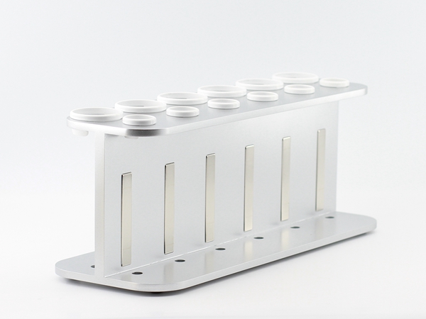 12孔磁力架/磁架/磁分离架(Magnetic Separation Rack)是能对各类磁珠进行高效分离,将15ml 或50ml离心管置于磁力架上,平均1分钟即可完成磁分离的过程,从而达到快速分离纯化细胞、蛋白或核酸等物质的目的。12孔磁力架的离心管能够刚好紧贴磁力架,让您的分离过程直观便捷。